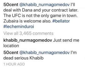 50 Cent Says He’s “dead serious” About $2 Million Offer To Khabib Nurmagomedov